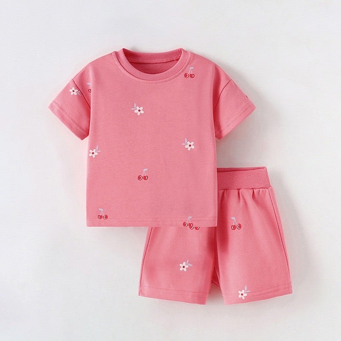 Conjunto de algodón , en color rosa oscuro detalle de flores