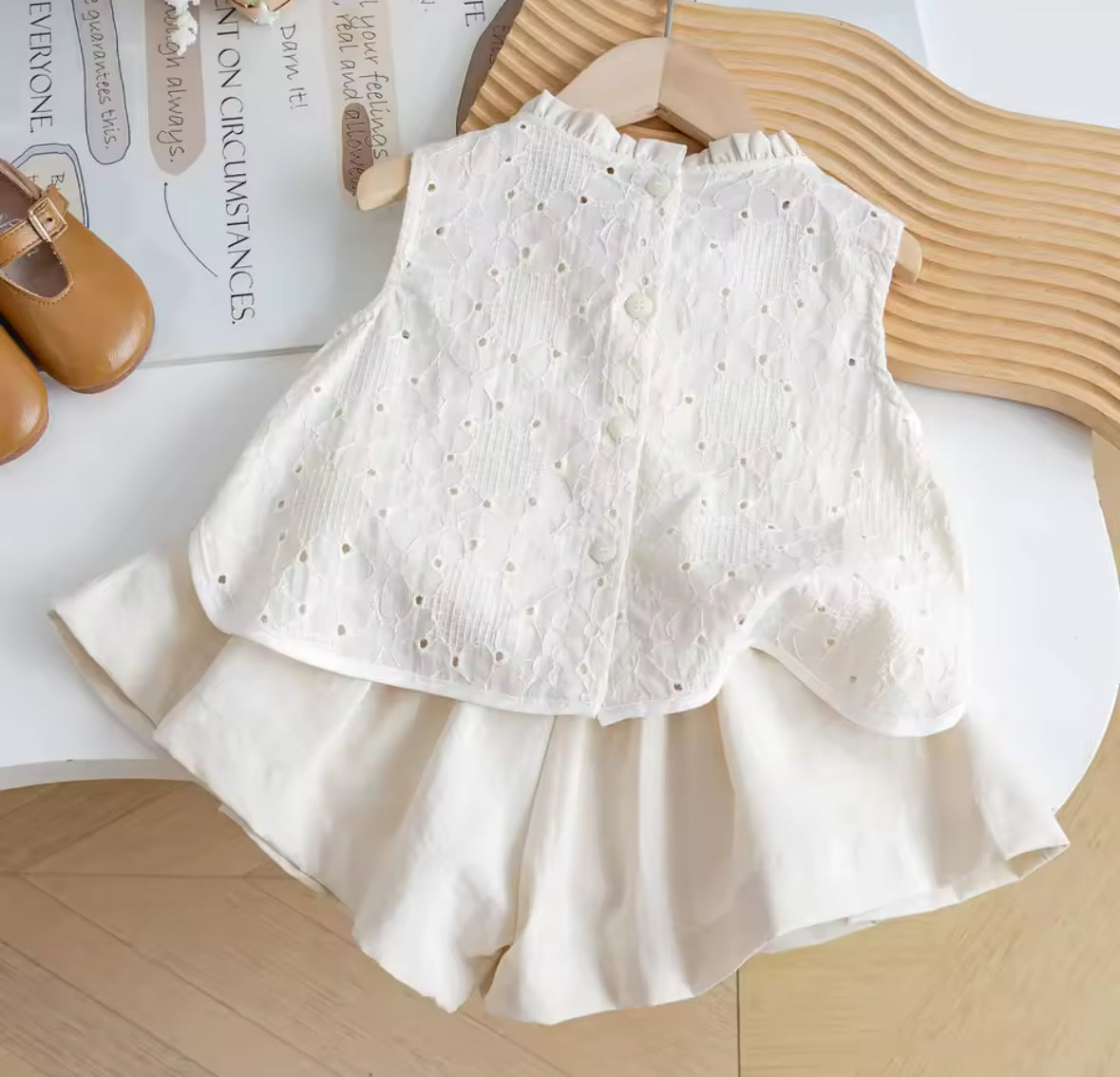 Conjunto short con blusa color beige detalles de bolsillo y estilo suelto