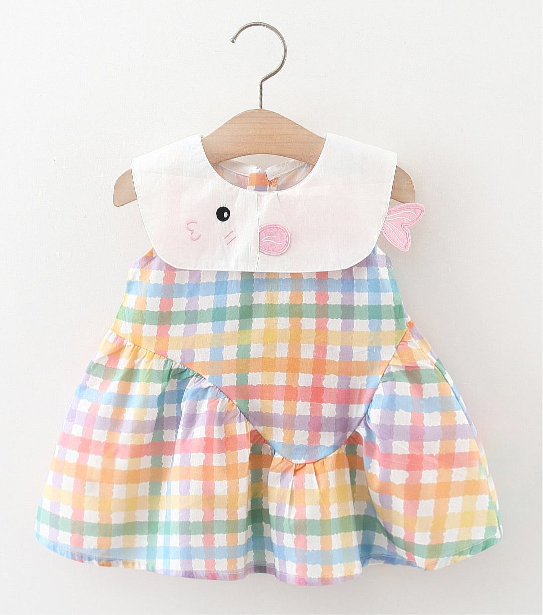 Vestido a cuadros colorido , detalle de pescadito en el cuello